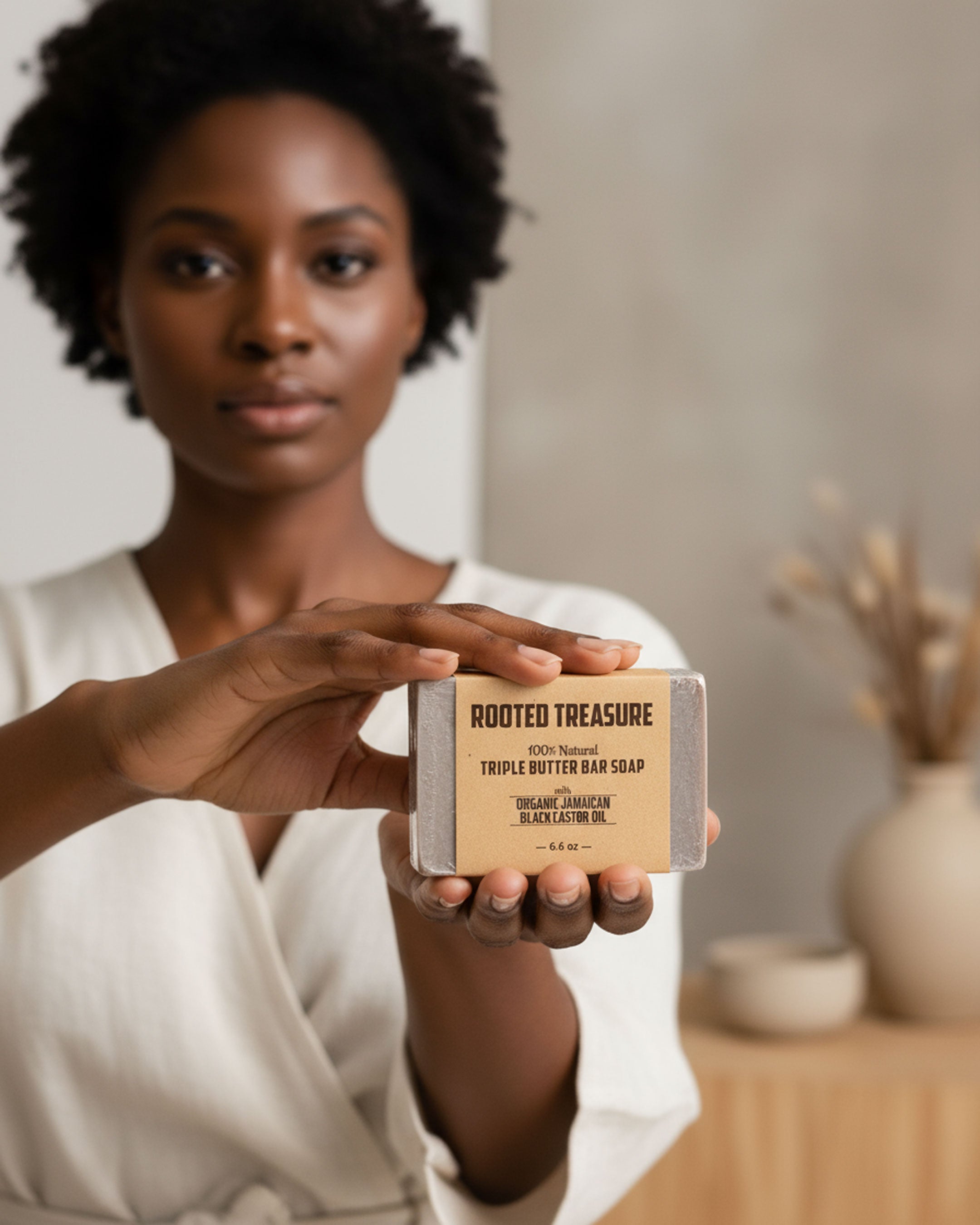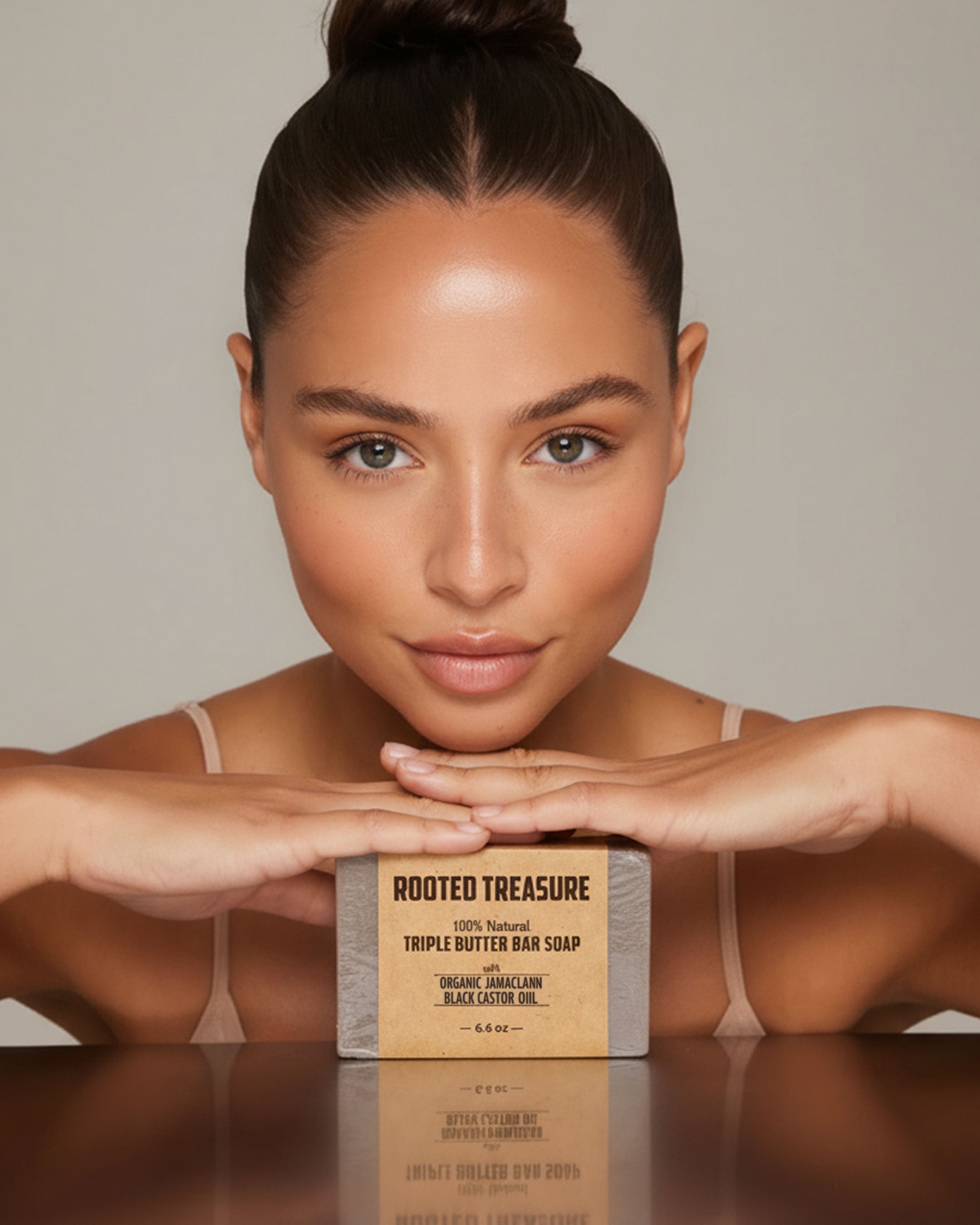 Our Triple Butter Soap is a testament to luxurious, natural skincare. We blend rich Shea, cocoa, and mango butters with our signature organic Jamaican black castor oil to create a deeply moisturizing bar. Each soap is lovingly handcrafted in small batches to ensure the highest quality, providing a spa-like experience that nourishes both skin and hair. We believe in pure, effective ingredients that truly care for you.